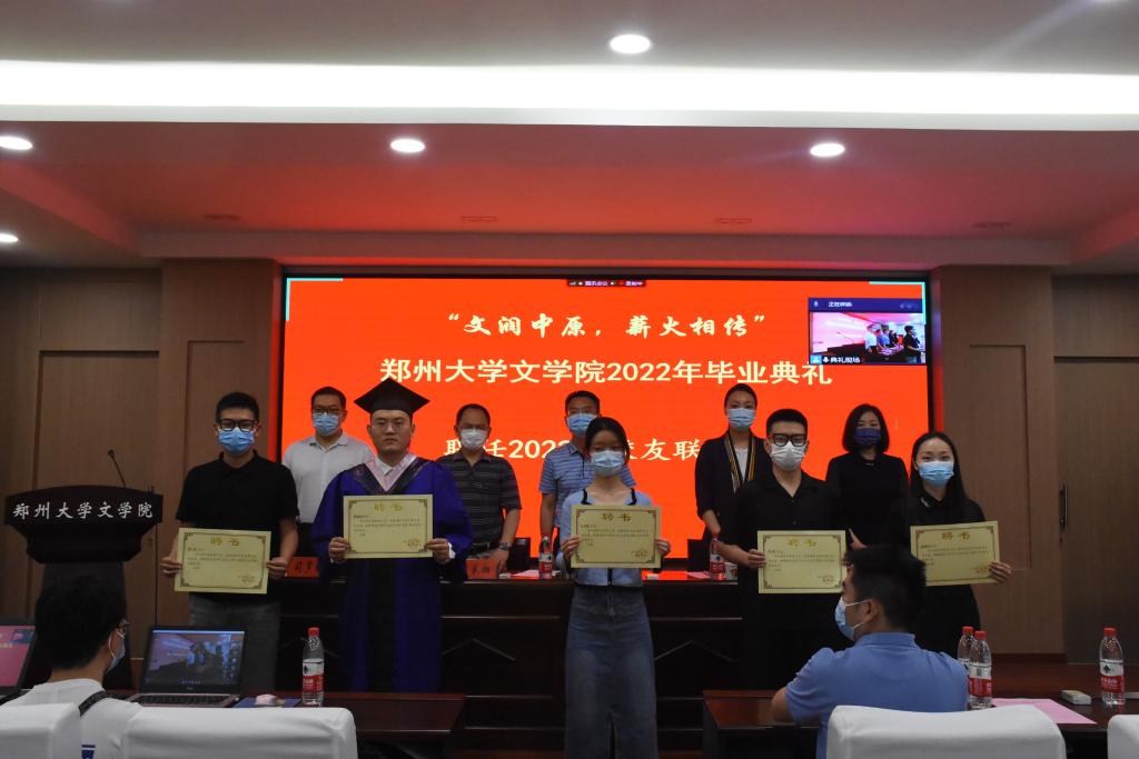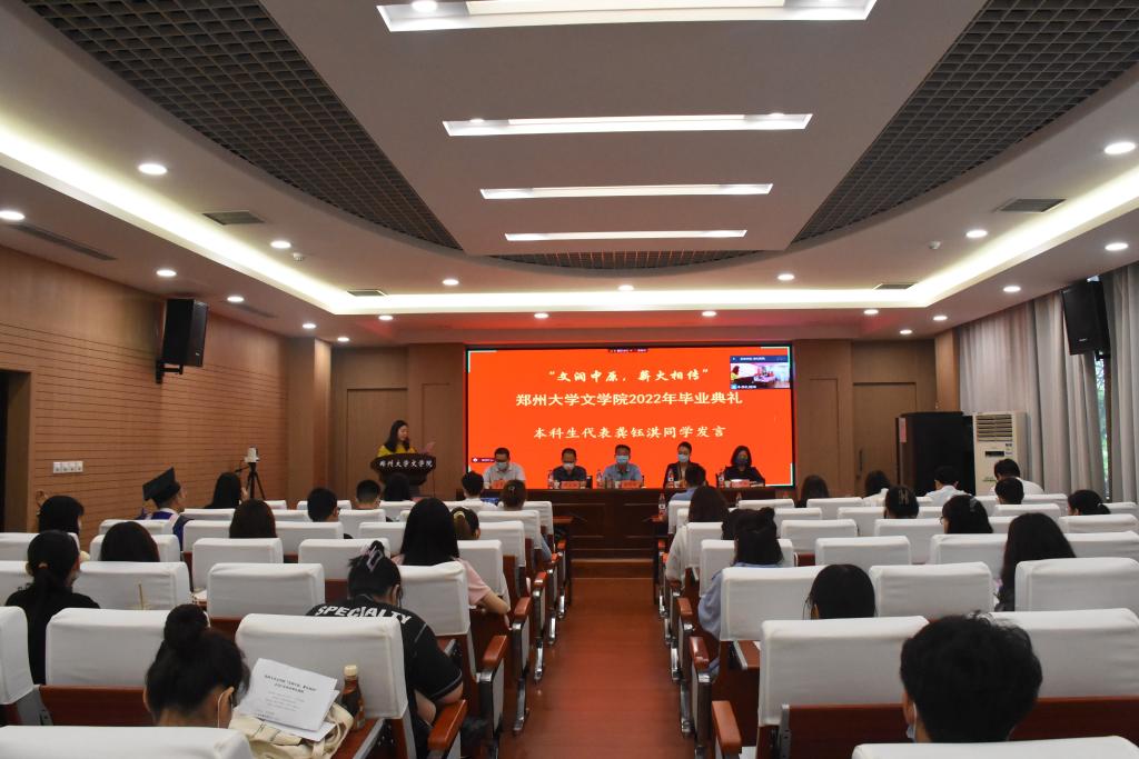 凉风细雨,金粽飘香。2022年6月4日上午,郑州大学文学院“文润中原,薪火相传”2022年毕业典礼在203报告厅举行。院党委书记甘剑锋、院长李运富,院领导罗家湘、韩宁、司罗红、侯巧红出席本次典礼,2022届毕业生与校友、教职工线上线下欢聚一堂,共同庆贺文学院2022届学子们顺利毕业,开启人生的新篇章。典礼由文学院学工办副主任苏雨主持。在庄严的国歌声中,本次典礼正式拉开帷幕。